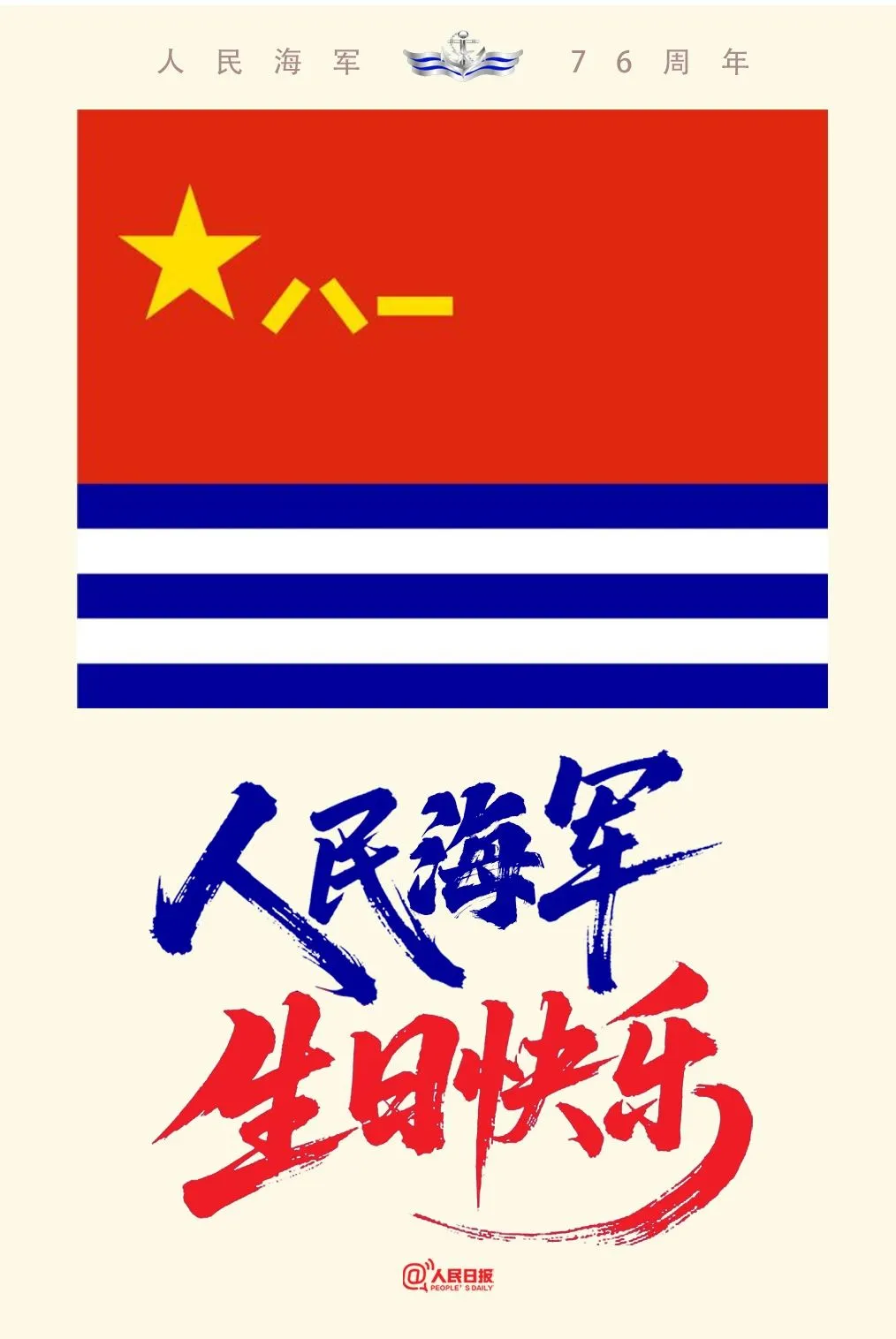 今天(4月23日),是人民海军成立76周年纪念日。76年来,人民海军从小到大、由弱到强。从小艇到巨舰,从近岸到深蓝,从单兵到体系,守卫祖国海空,守护万家灯火。