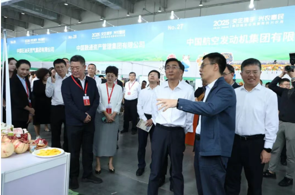 国务院国资委秘书长庄树新、国务院国资委社会责任局局长李军、农业农村部区域协作促进司(革命老区工作办公室)司长(主任)李富君等领导来到中船集团展区,询问了解集团公司定点帮扶的进展情况及特色农产品相关信息。